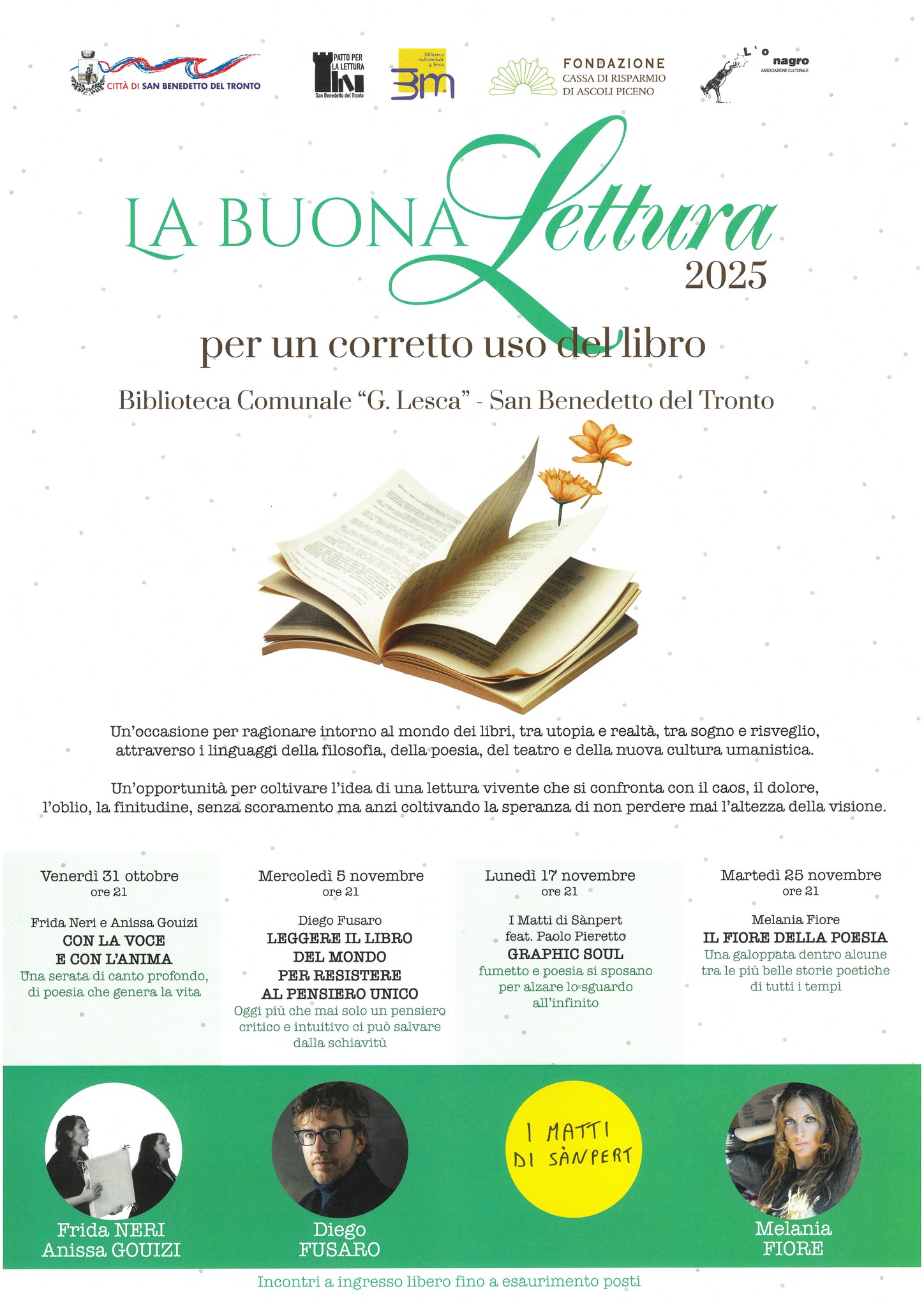 Appuntamento all’interno dell'iniziativa La buona lettura 2025 per un corretto uso del libro. Un’occasione per ragionare intorno al mondo dei libri, tra utopia e realtà, tra sogno e risveglio, attraverso i linguaggi della filosofia, della poesia, del teatro e della nuova cultura umanistica. Un’opportunità per coltivare l’idea di una lettura vivente che si confronta con il caso, il dolore, l’oblio, la finitudine, senza scoramento ma anzi coltivando la speranza di non perdere mai l’altezza della visione