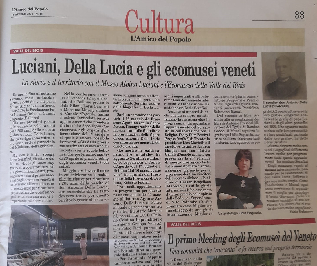 Luciani, Della Lucia e gli ecomusei veneti | L'Amico del Popolo